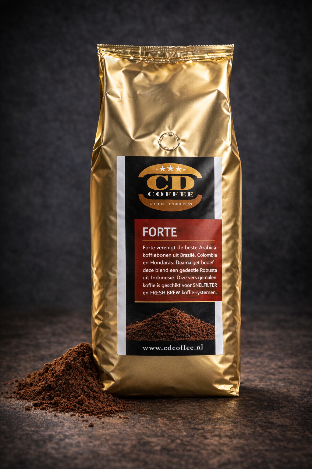 FORTE verenigt de beste Arabica koffiebonen uit Brazilië, Colombia en Honduras. Daarnaast bevat deze blend een gedeelte Robusta uit Indonesië. Deze vers gemalen koffie is geschikt voor SNELFILTER en FRESH BREW koffie-systemen.